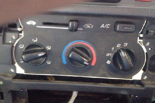 これでスイッチをヒーターコントロールから外します。スイッチは奥から手前に押して来ると抜けます