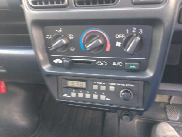 型式はHA7というもの。エアコンが効かないということで入庫してきました。症状を確認するとまずは風が出ない。ブロアモーターが不良です。風が出ないだけなのか、さらにエアコン自体も効かないのかは現段階で不明なので、とりあえず先にブロアモーターの修理をさせてもらうことに。