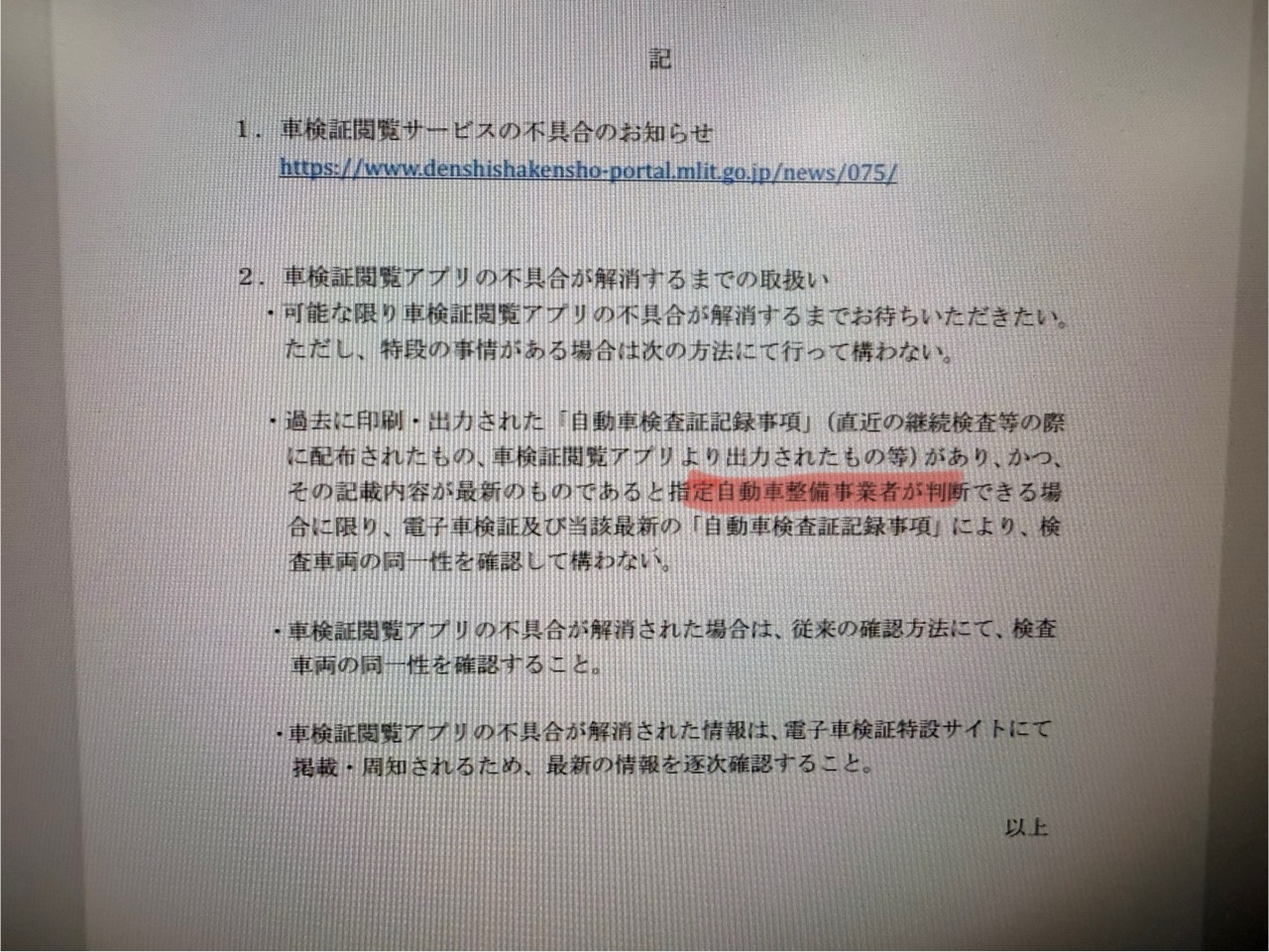 車検証閲覧アプリの不具合で、車検整備がストップに・・・