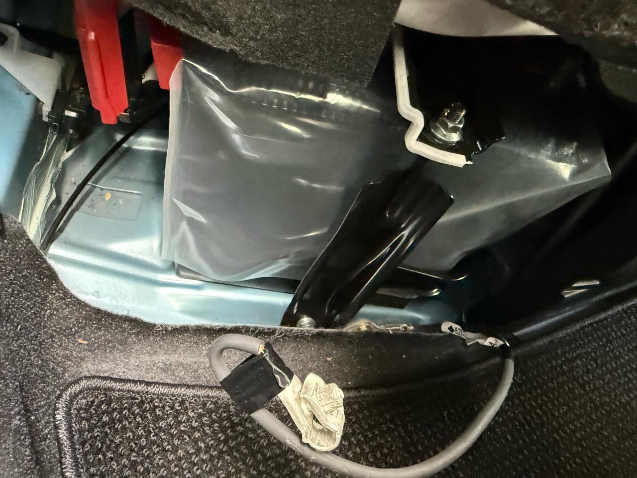 アクアのバッテリーは右後部座席の下についています。嫌な場所です。