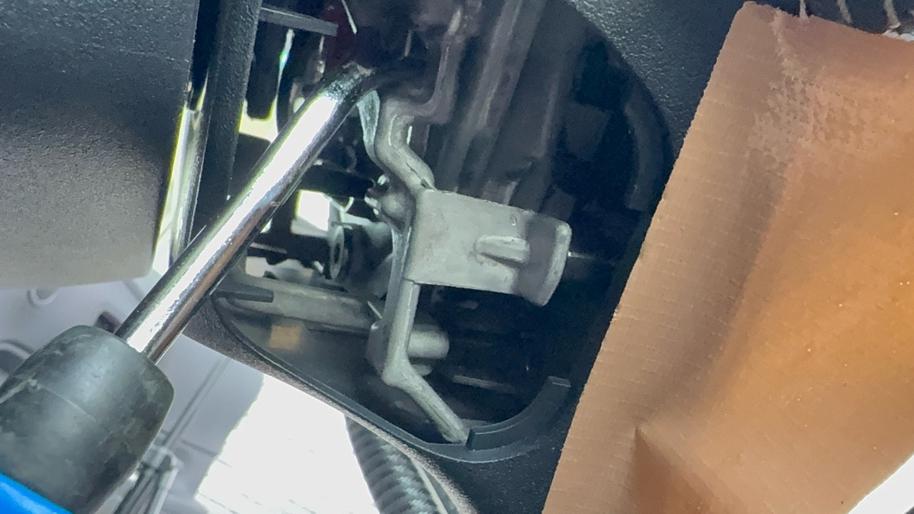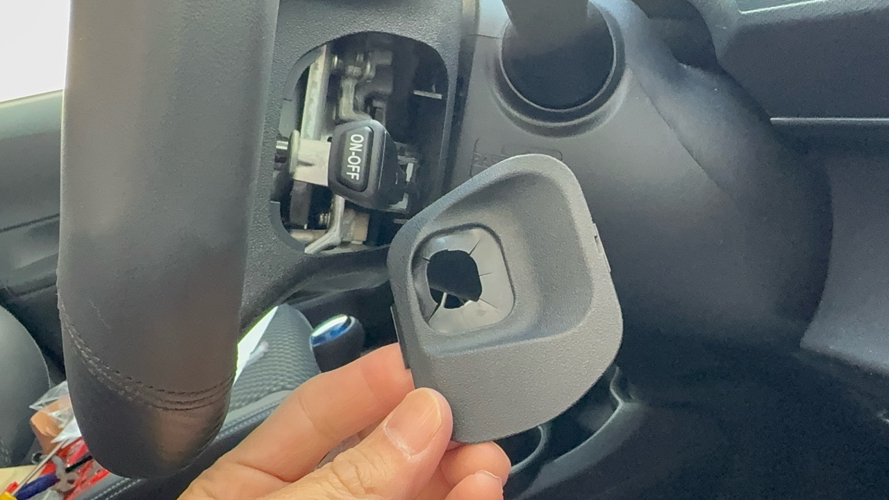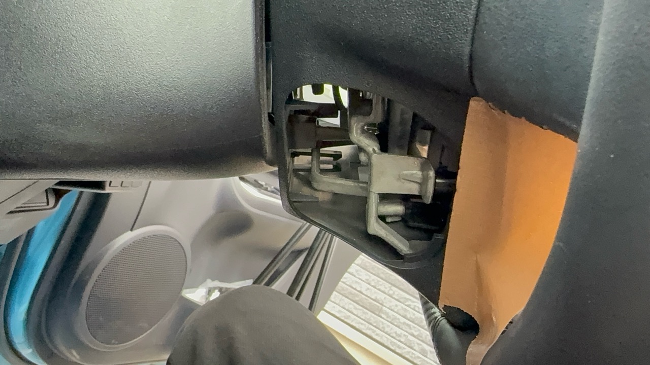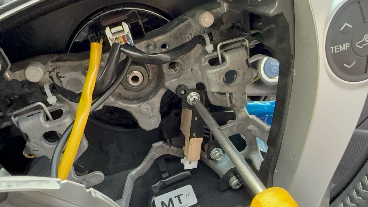 通常ここからエアバッグを取り付けているネジを外すのですが、アクアはエアバッグはピンで固定されています。