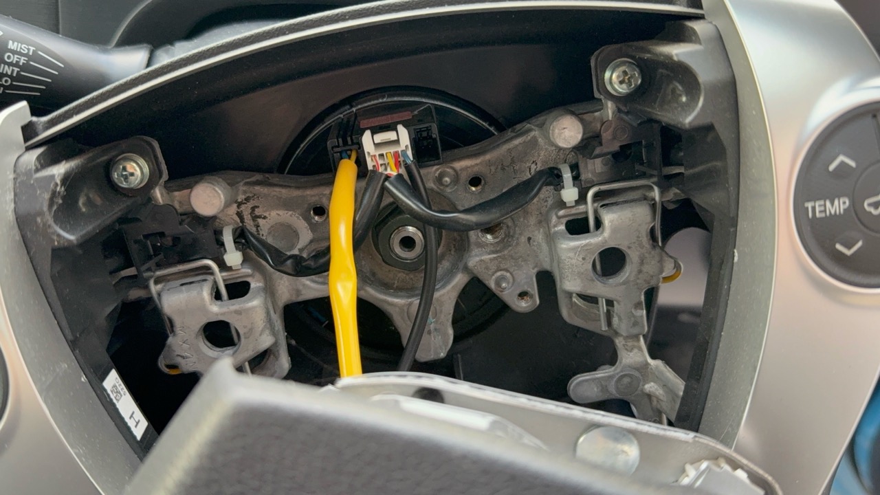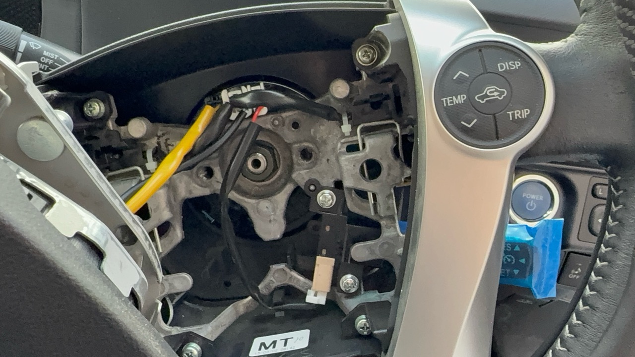 ここから本来ならコネクターを外して、エアバッグを外すんですが、僕はこの状態のまま作業を続行しました。