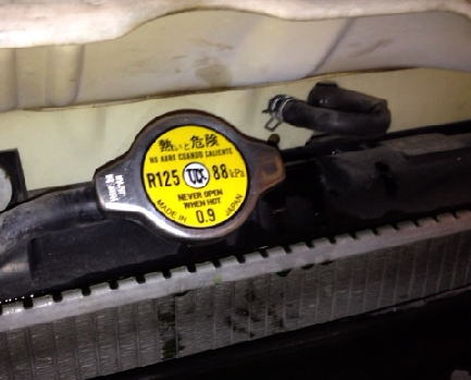 エンジンが冷めたら、もう一度ラジエターキャップから注水。サブタンクも満タンにして終わり