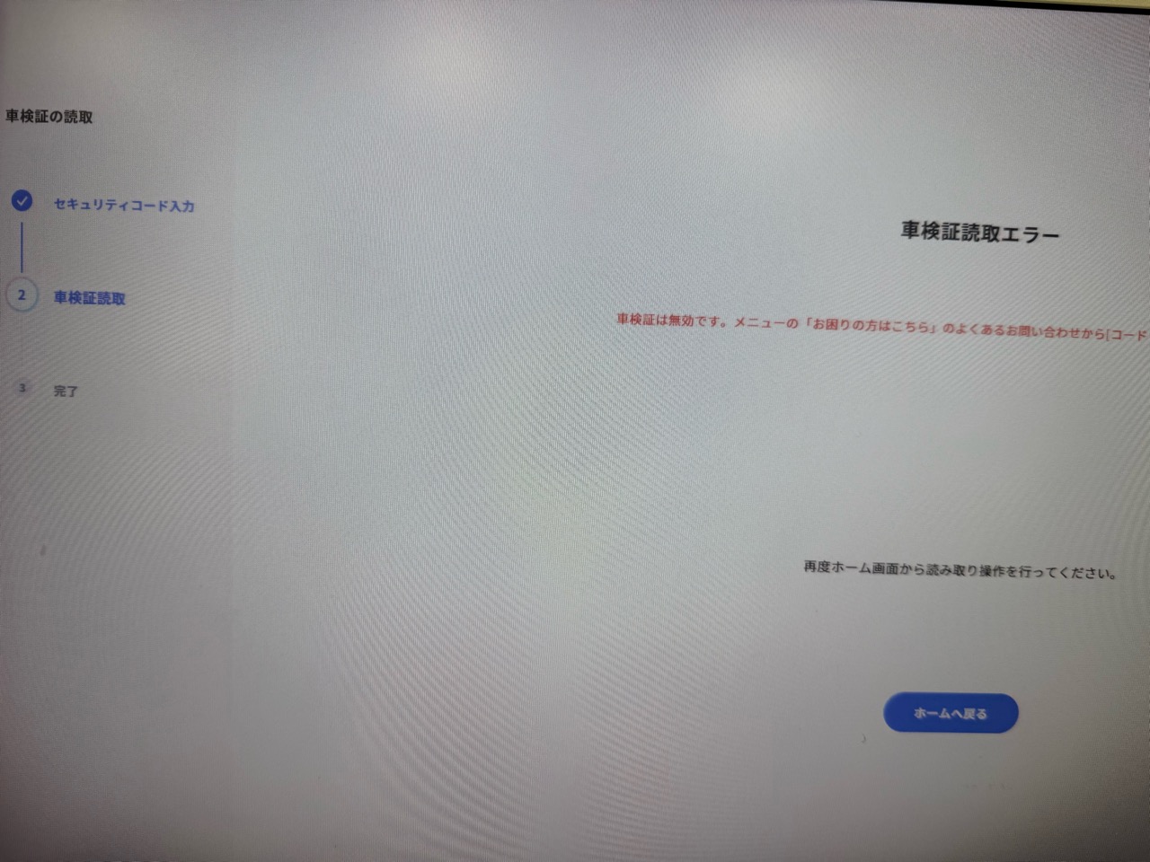 受け入れ時に必ずリーダーを通して、アプリで中身を読み取る必要があります。これは、同一性の確認作業で必要なのと、本当にその車検証が本物なのかを確認するためです。