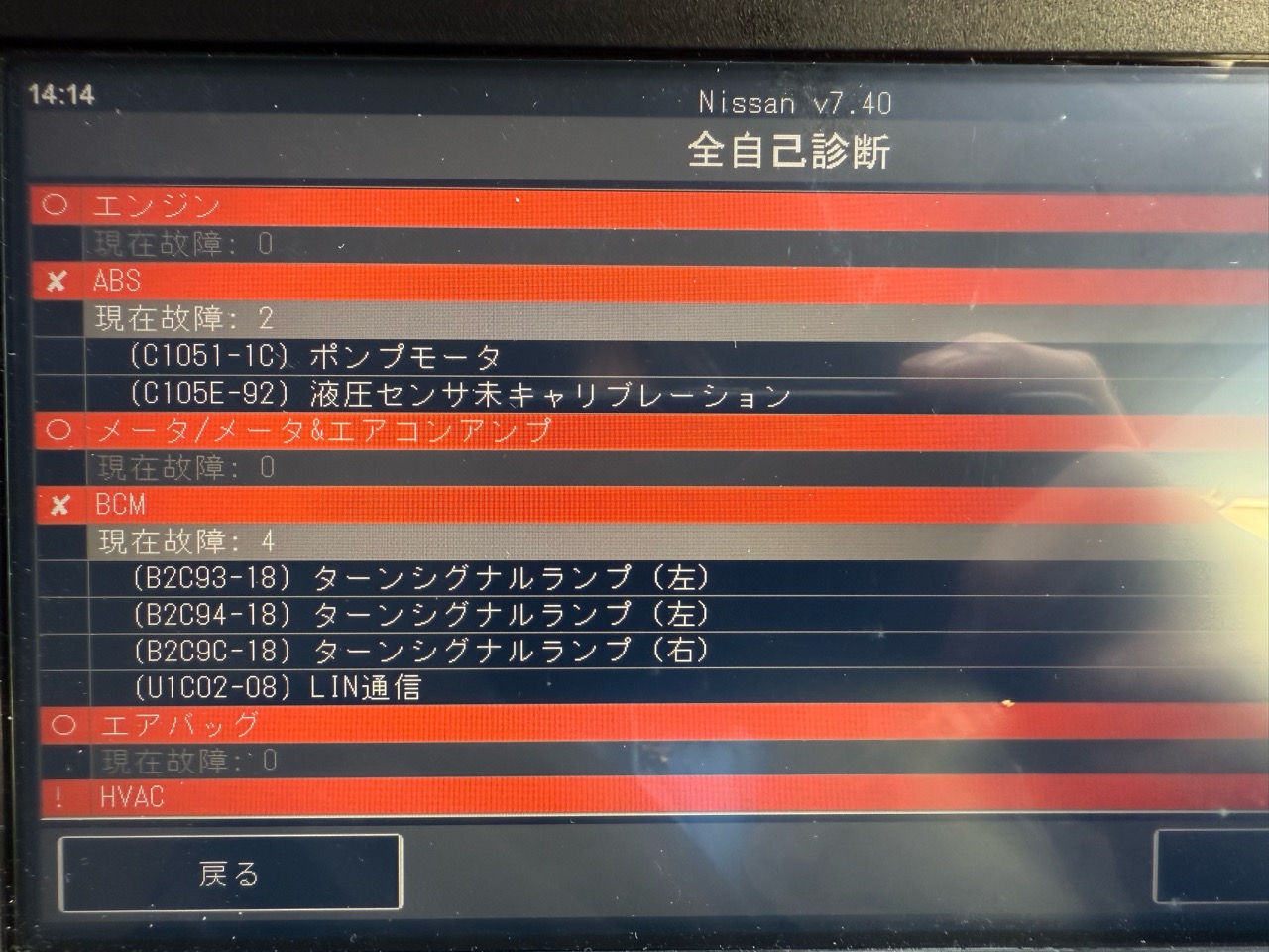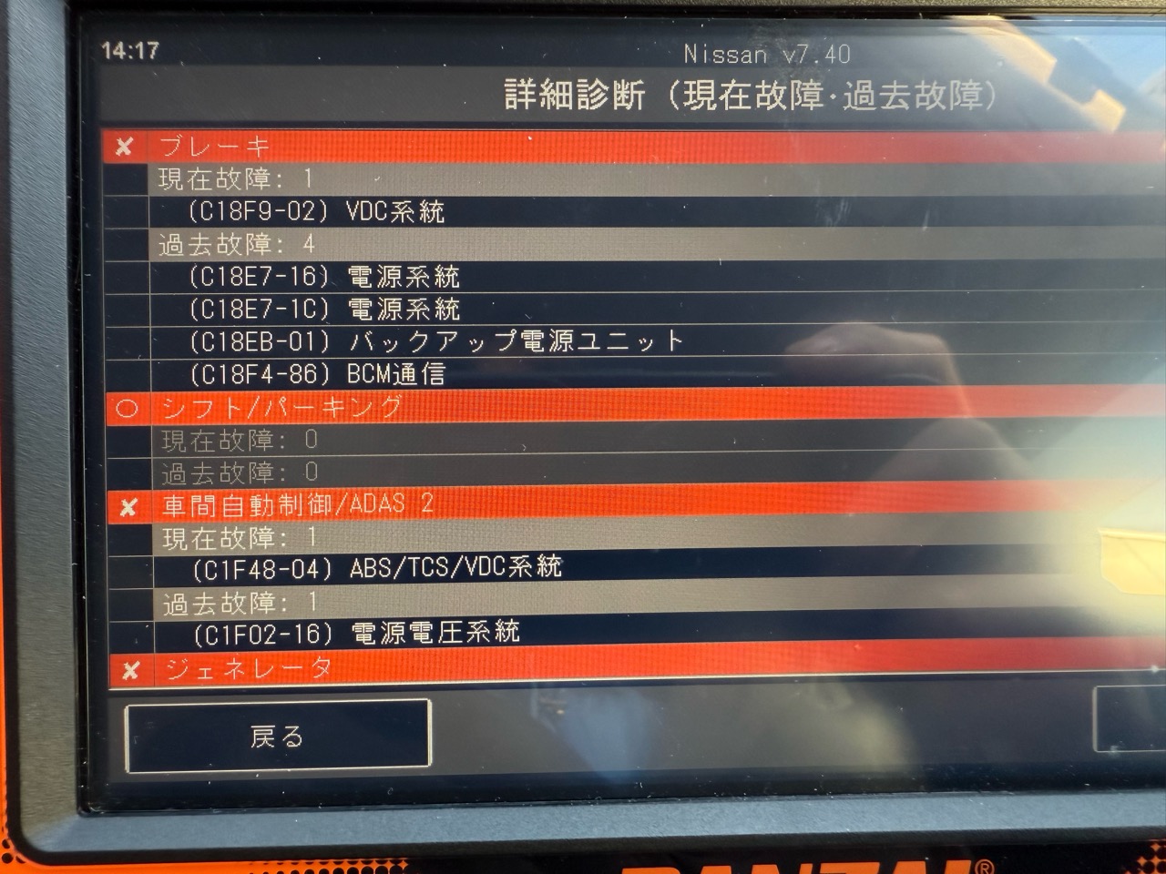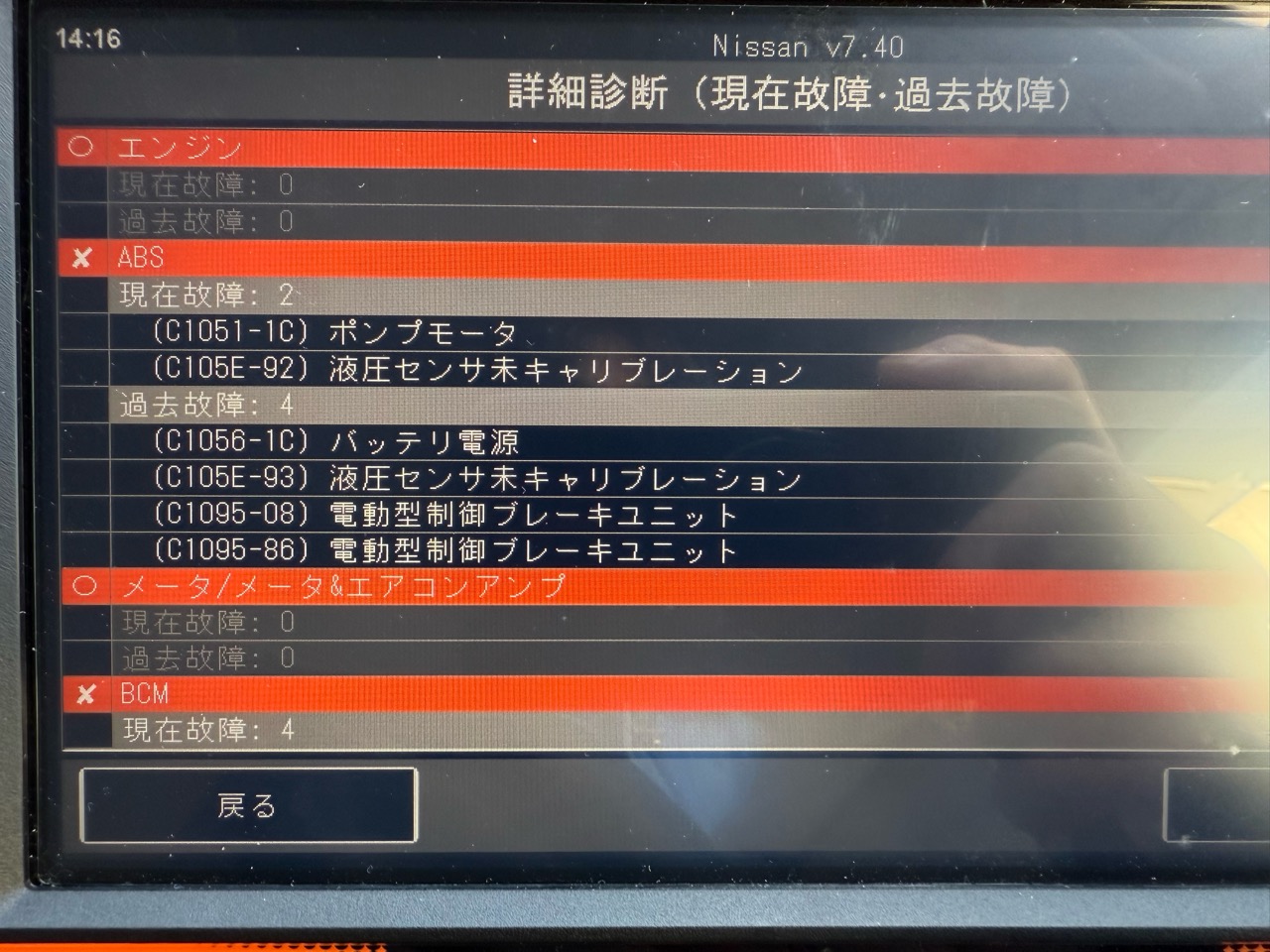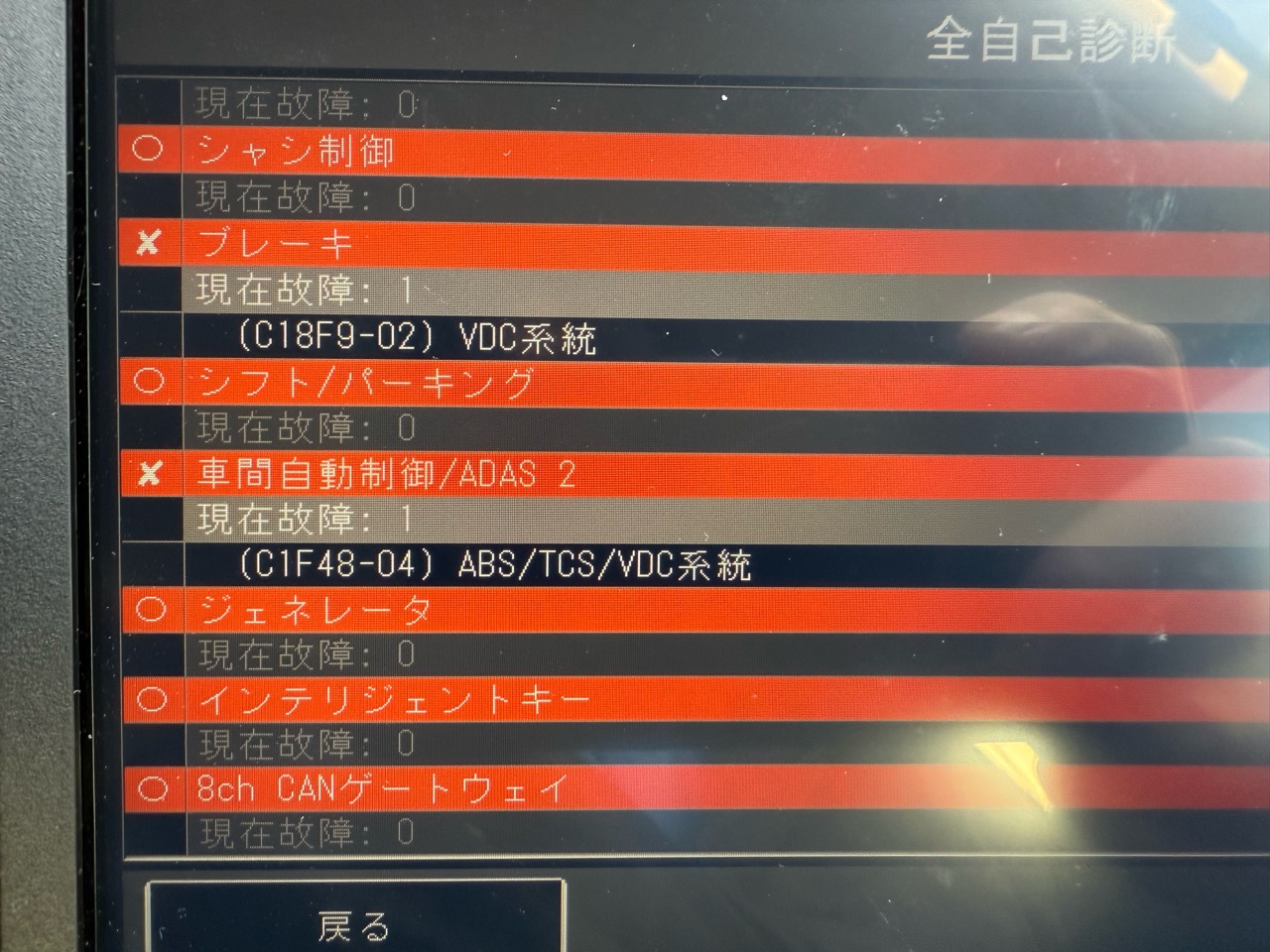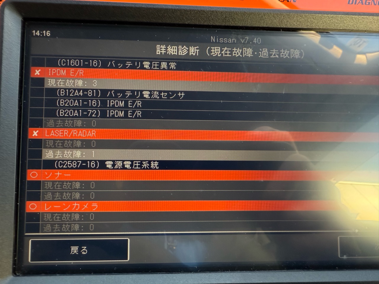 診断機を当ててみるとざっとこんな状態です。