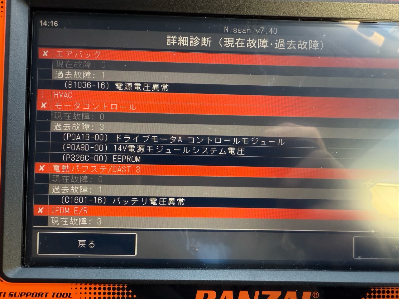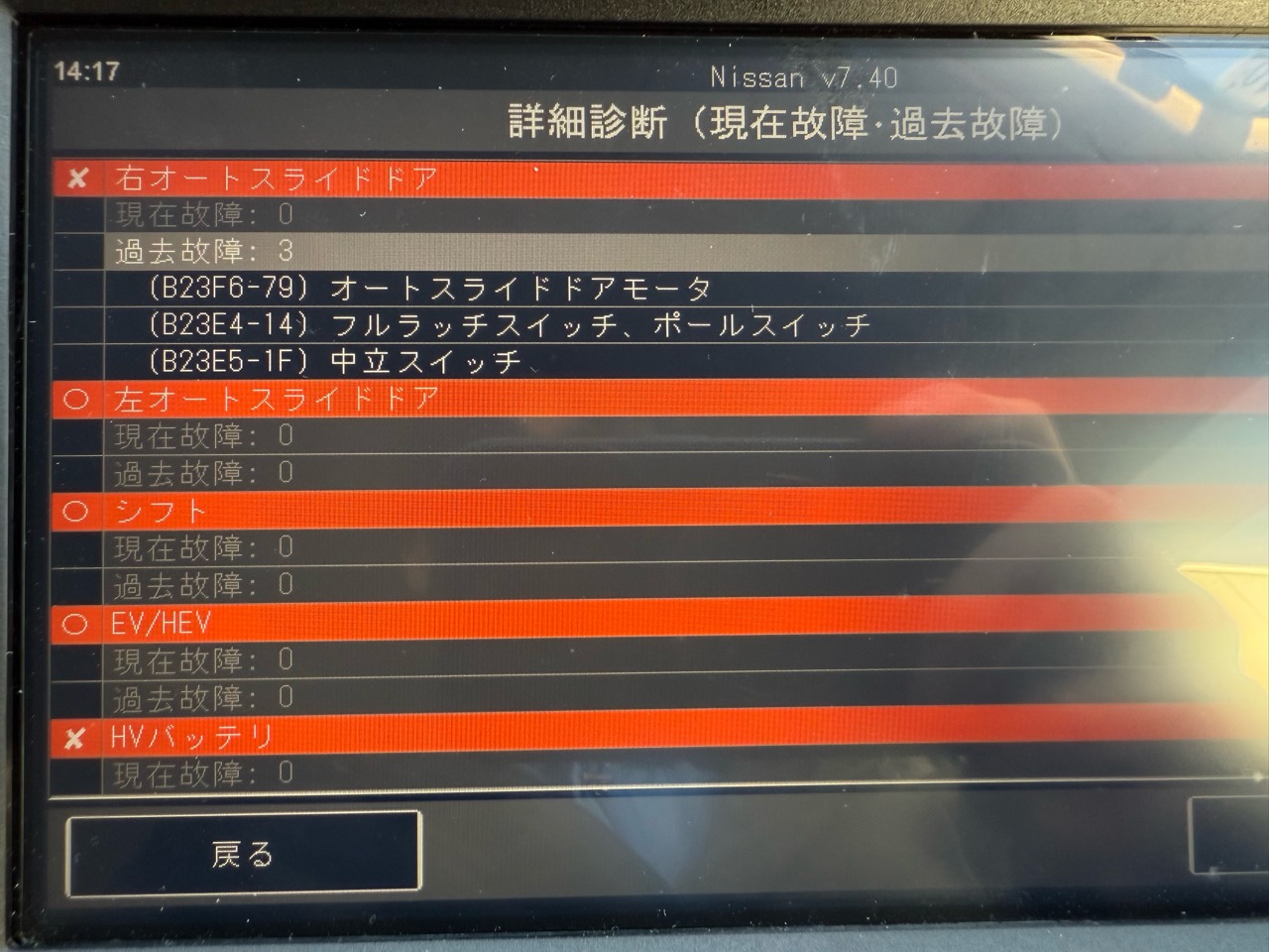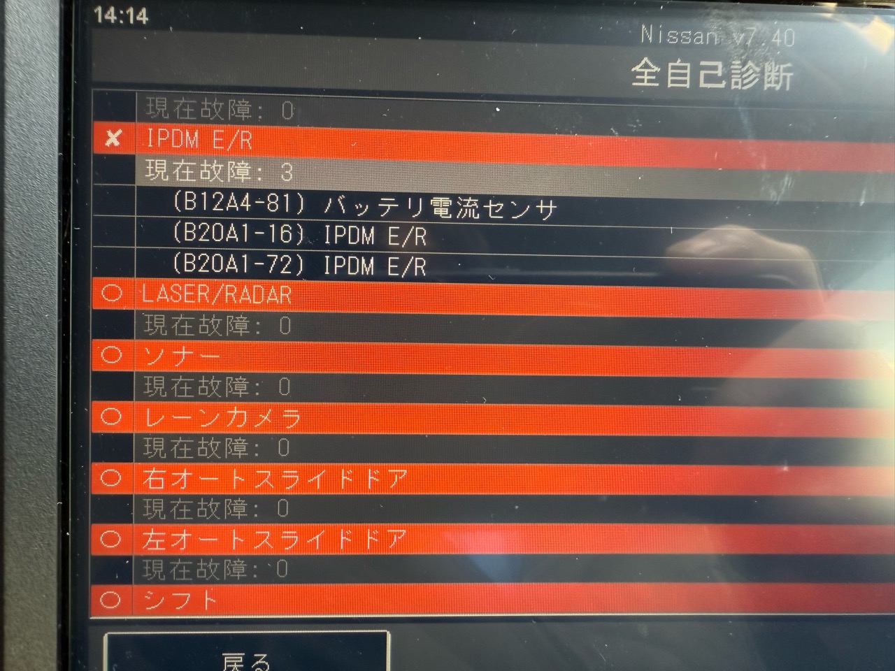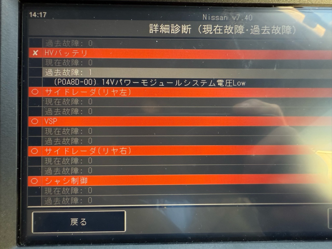 ただし、この車は新車から1年目なので保証で修理することが可能なので、これらのパラメーターを保存しておいて、そのまま日産へ修理依頼をしました。