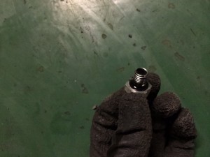 オイルを排出した後、17mmのボルトを取り付けて、その上にある22mmのボルトを緩めてオイルフィルターを外します。