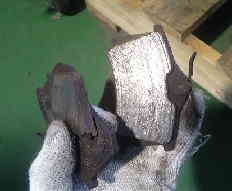 ちなみになんともなかったと思ったほうのパッドにもクラックが入っている。こちらもライニング面が剥がれ落ちるのは時間の問題だったか