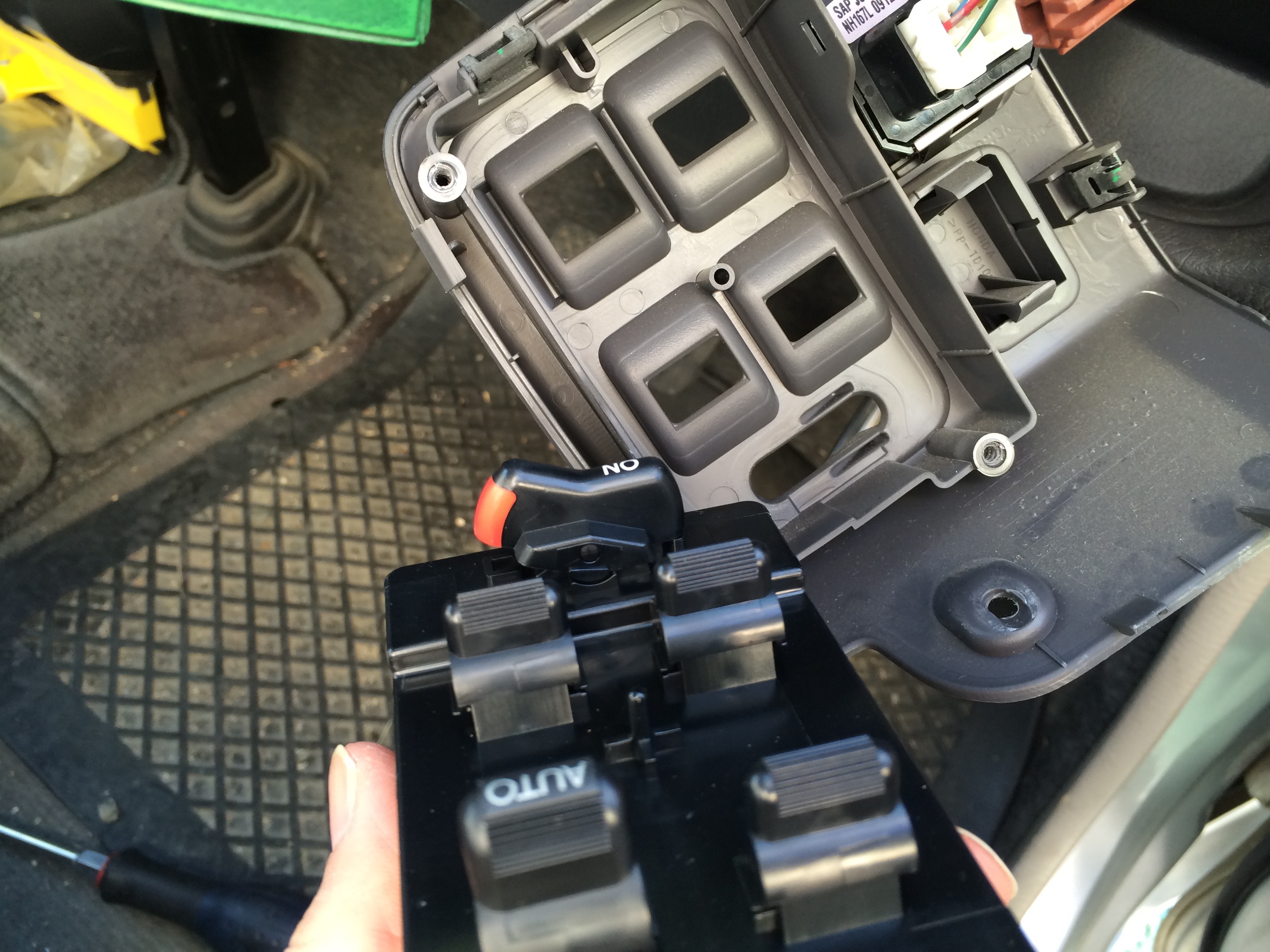 何度か試していると、パワーウインドウが動かない時もありました。確認してみたらやはりスイッチが壊れていた。