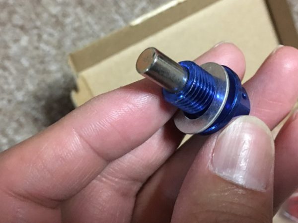 青色が綺麗なドレンボルトです。先端に磁石が付いています。