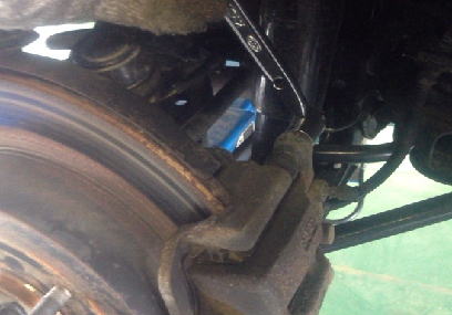 キャリパー下のスライドピンは足回りのアームが邪魔で抜けないから