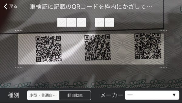 車検証の下の方にQRコードが付いてるのでこれを読み取らせます。