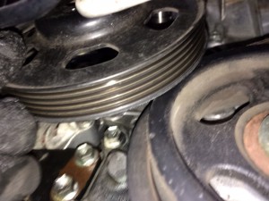 今回ベルトは再利用するので、オルタネーターとウォーターポンプのプーリーからベルトを外しておくだけでOK。